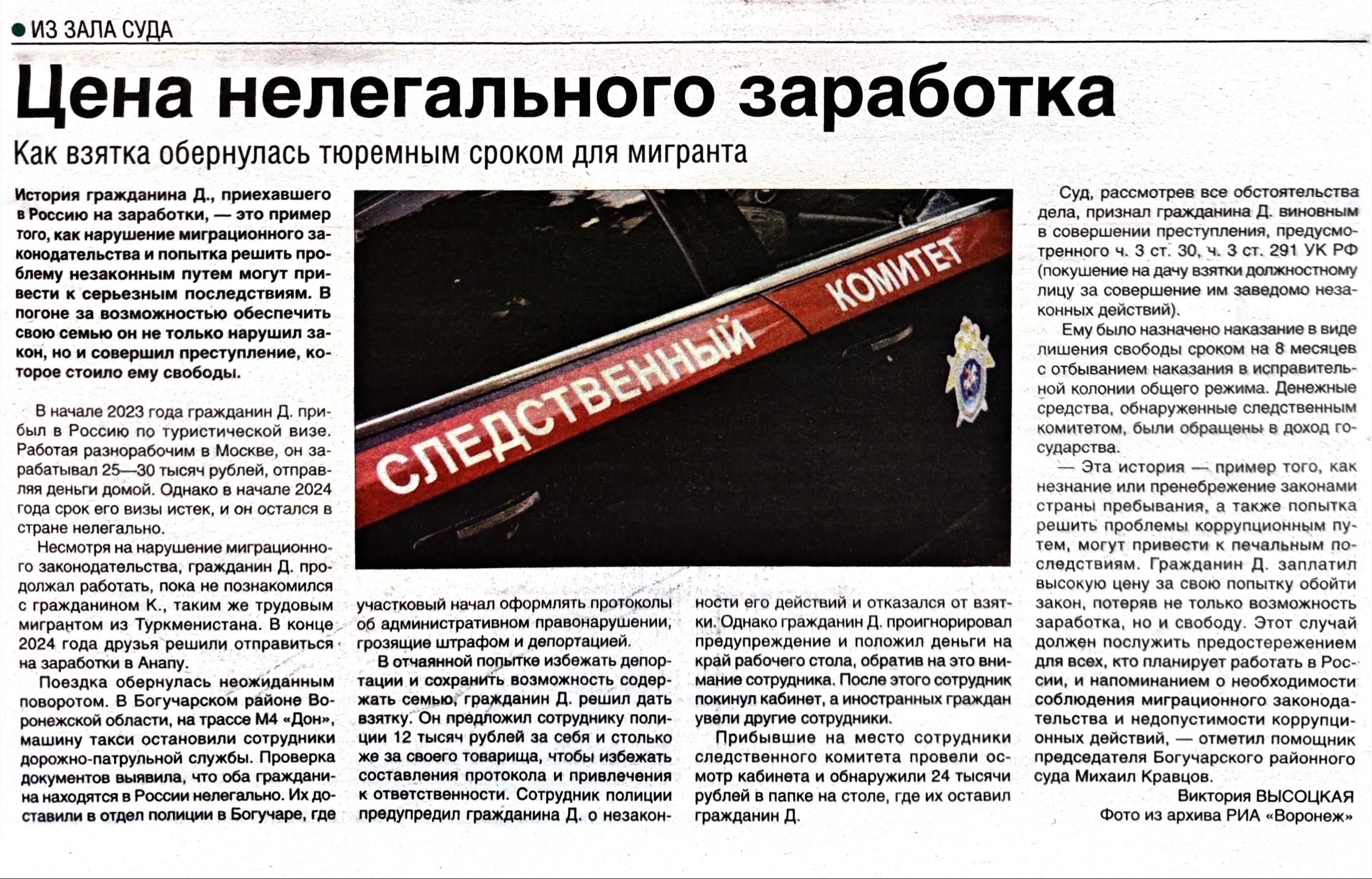 | "Цена нелегального заработка" статья газеты "Сельская Новь" выпуск № 27 от 11.07.2025 года | версия для печати |